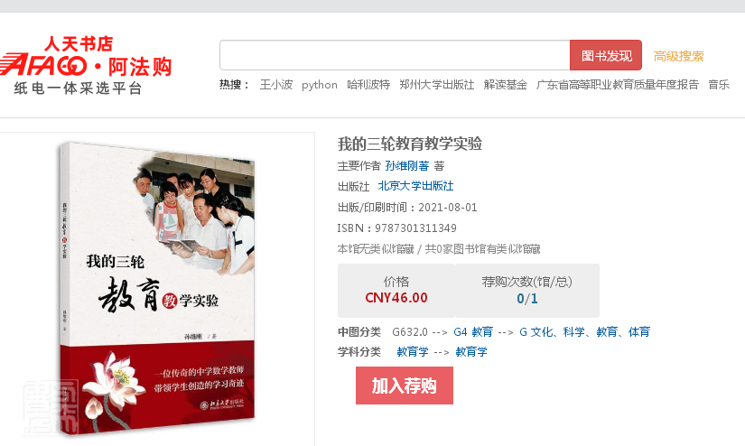 进入主界面,展示重点出版社书目,专题书目,直接点击出版社名称或专题书目入口即可进入选书界面。点击选中的图书,点击加入荐购,点击纸书荐购,购书完成。在右上角我的荐购购物车里,可以看到所选图书。