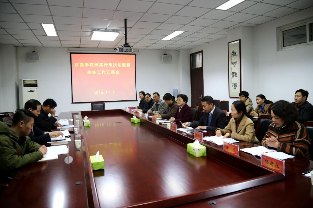 11月9日下午,河南省档案局王书继副局长一行三人莅临bet36体育在线进行档案行政执法监督检查。检查汇报会在行政楼第一会议室举行,院长赵继红出席汇报会。bet36体育在线档案馆全体人员以及党委组织部、人事处、财务处、学生处、基建处、公共实验中心等单位兼职档案员参加汇报会。汇报会由院长办公室主任陈遂德主持。