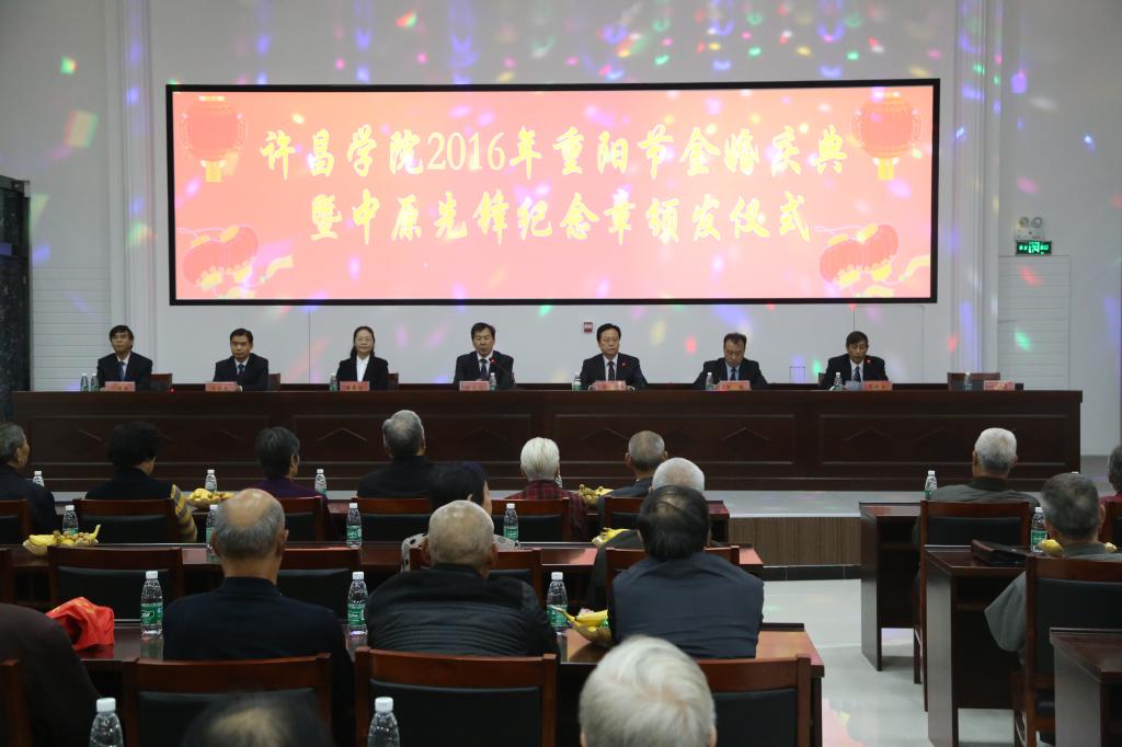 秋风送爽,金桂飘香。10月9日上午,bet36体育在线举行了2016年重阳节金婚庆典暨中原先锋“七一”纪念章颁发仪式。校党委副书记马超,党委办公室、党委宣传部、党委统战部、离退休工作处等部门负责同志出席仪式。bet36体育在线120位离退休老同志和学生代表参加了仪式。庆典仪式由校党委副书记马超主持。