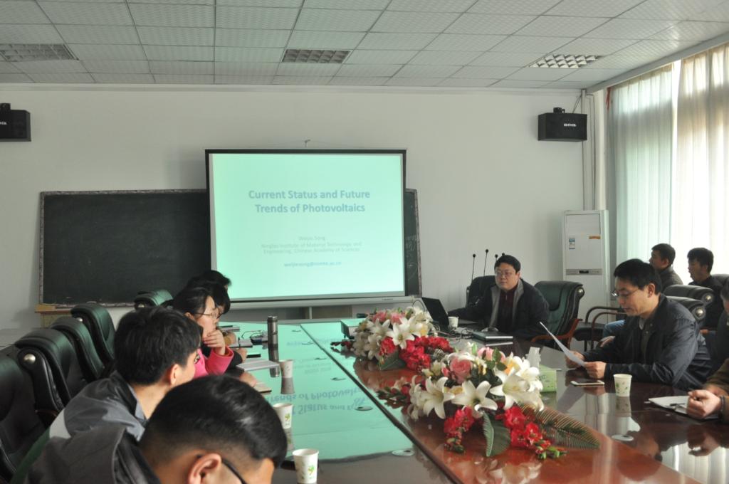 报告会上,宋伟杰研究员围绕光伏产业的需求、光伏技术和产业的现状和未来发展、未来光伏技术发展的主要方向等方面和与会师生进行深入的交流。同时,宋伟杰研究员又和与会师生分享了自己所在课题组开展透明导电膜、减反射膜、硅基薄膜等多种太阳电池关键材料和太阳电池技术的研究进展以及与企业开展应用研究的经典案例。最后,宋伟杰研究员结合自身工作经验强调指出,在材料研究中要面向器件应用的基础特性要求,做到“料成材,材成器,器好用”。