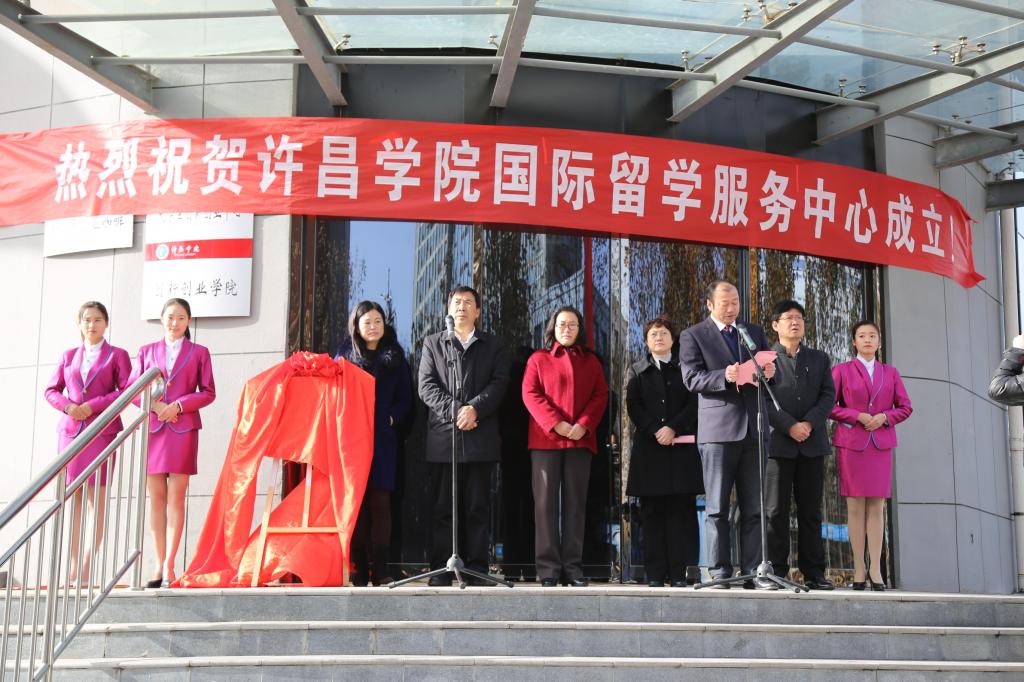 12 月 2 日上午,bet36体育在线国际留学服务中心在创新创业学院揭牌成立。许昌市副市长秦春梅,bet36体育在线院长赵继红、副院长崔斌,许昌市旅游局局长、外侨办主任陈志远出席仪式,bet36体育在线各相关单位负责人以及各院部学生代表100余人参加揭牌活动。仪式由副院长崔斌主持。