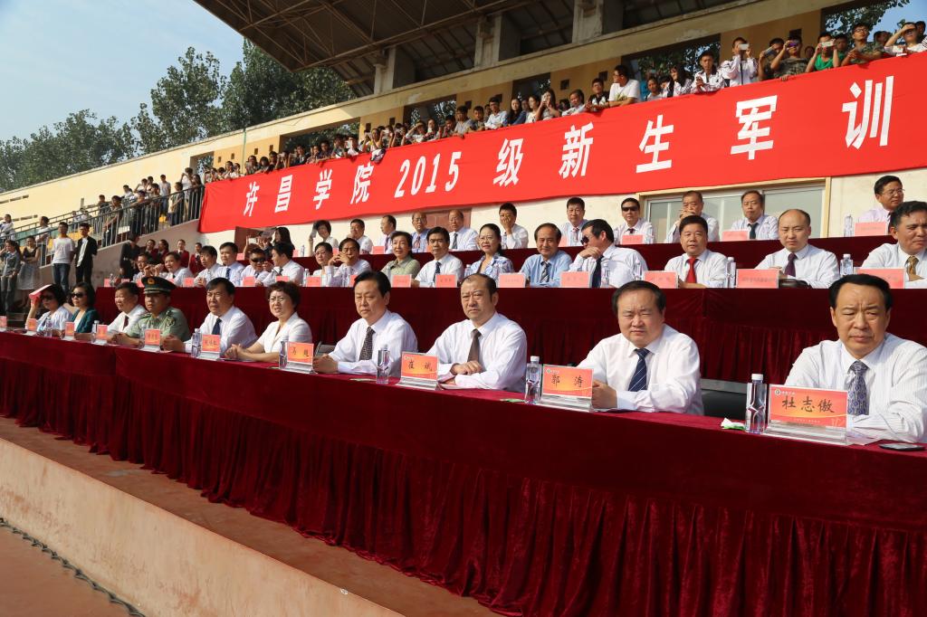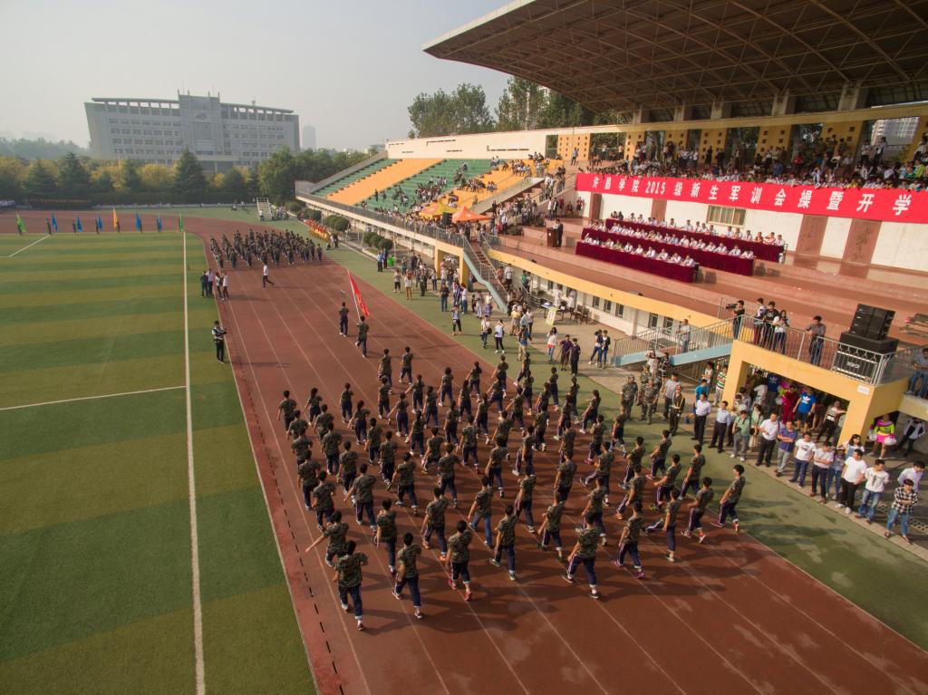 9月25日上午,bet36体育在线在羽飞田径场隆重举行bet36体育在线2015级新生军训会操暨开学典礼。校领导赵继红、马超、张建军、崔斌、黄怡俐、郭涛、罗凤英、杜志傲,中国人民解放军某部营长张鹏等出席仪式。学校各院(部)、各机关部门负责人在主席台就座。全校各院(部)主管学生工作的领导、2015级的辅导员、班主任、校友代表和全体新生6000多人参加会操活动。仪式由院长办公室主任陈遂德主持。