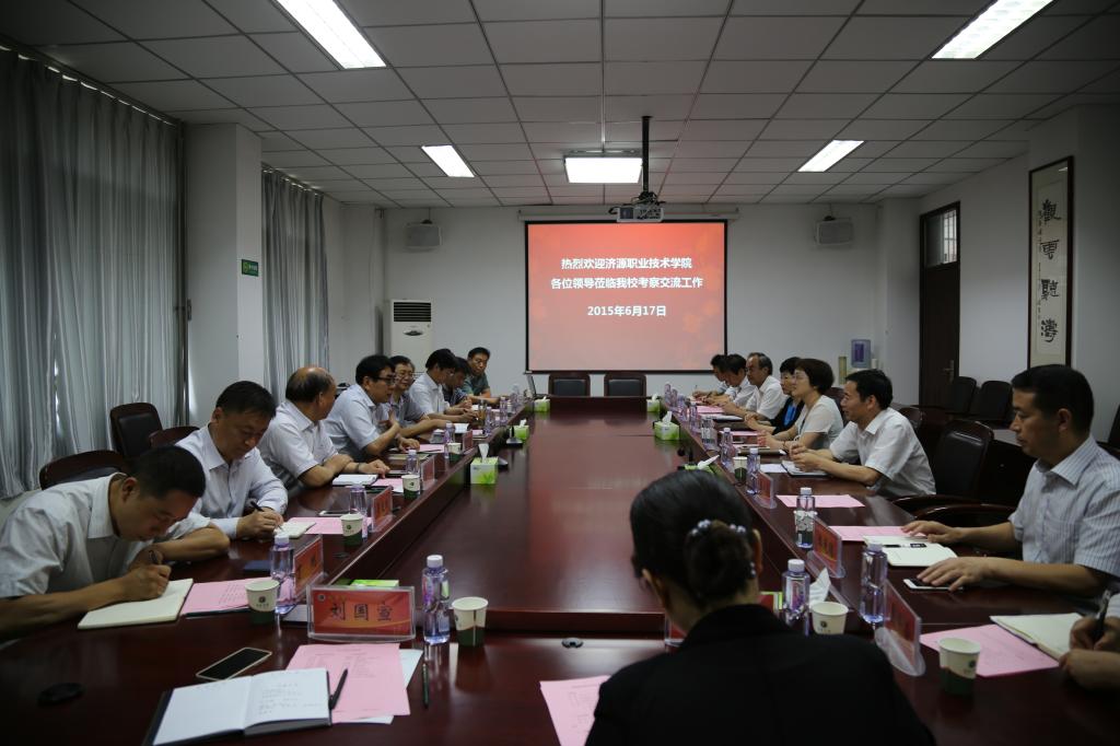 6月17日,济源职业技术学院党委书记赵学通、院长陈学军、副院长郝小会一行来bet36体育在线考察工作。在双方座谈交流时,学校领导表示,济源职业技术学院是一所很有特色的高等职业技术院校,特别是技能型人才培养方面的经验非常值得bet36体育在线借鉴。他希望双方加强联系、加强合作,积极探索应用型本科与高职院校合作发展的道路。座谈会上,赵继红院长向客人介绍了bet36体育在线在专业结构调整、“双师结构”队伍建设、人才培养模式改革、校企协同创新、政产学研合作等方面的思路和措施。