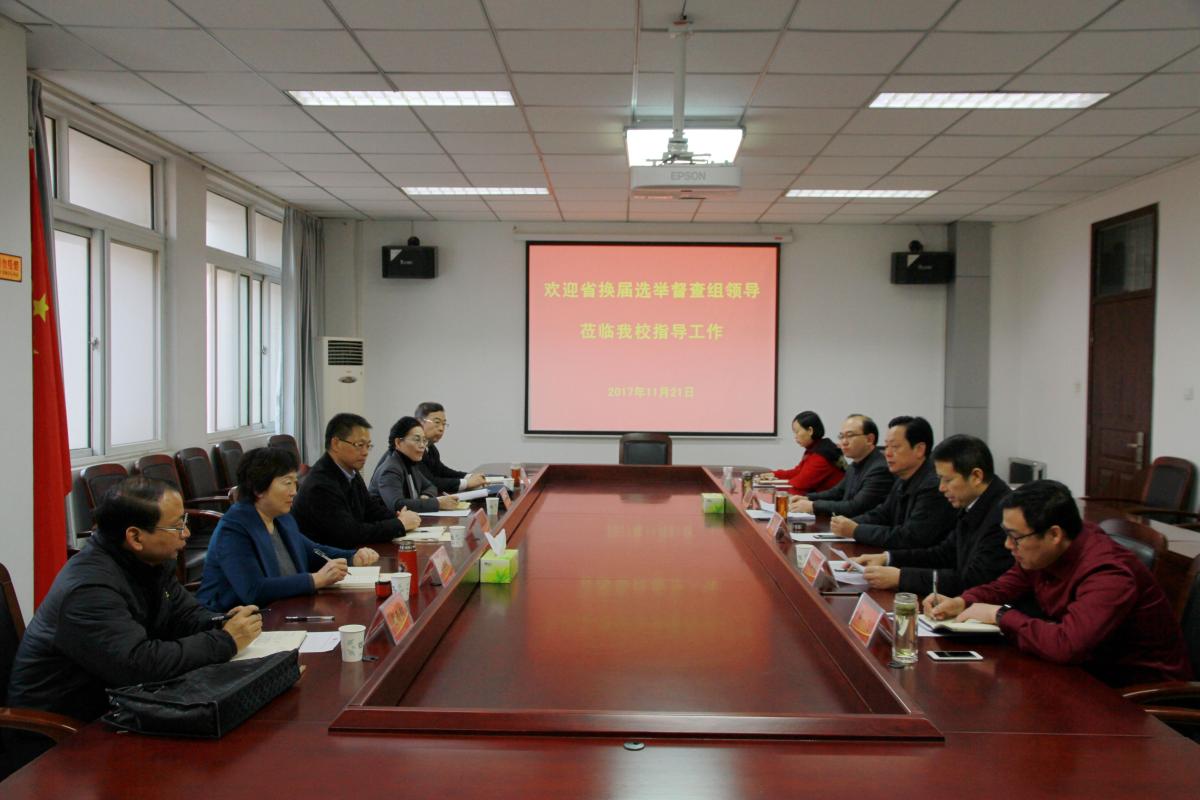 11月21日上午,省换届风气巡回督查组来到bet36体育在线,对bet36体育在线推荐提名河南省第十三届人民代表大会代表工作进行督促、检查和指导。工作座谈在学校办公楼第四会议室举行,督查组组长、省纪委驻河南日报报业集团纪检组组长朱永飞,督查组成员省委组织部正处级巡视专员丁霞、省人大常委会内司工委司法监督处调研员尚慧燕、省纪委驻省公安厅纪检组案件监察室副主任刘为民,市委组织部干部监督室主任周西钢参加会议,校党委副书记马超主持座谈会,党委组织部有关负责同志参加了会议。