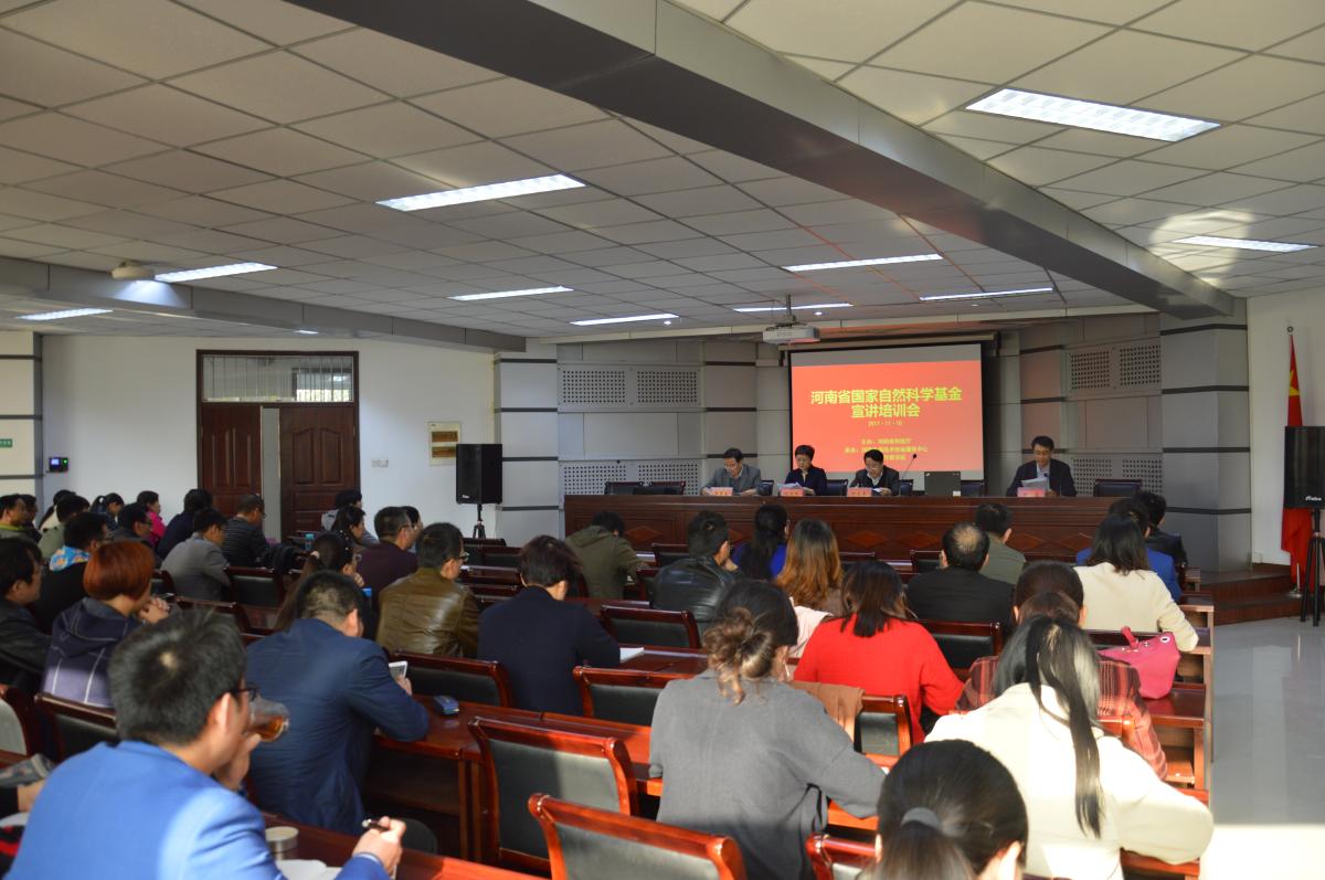11月10日下午,bet36体育在线在办公楼楼第三会议室召开河南省国家自然科学基金宣讲培训会暨学校2018年度国家自然科学基金项目申报动员会。院长赵继红、副院长郑直出席培训动员会,各理工科二级学院院长、分管科研副院长和全体教授、博士100余人参加了会议。会议由郑直副院长主持。