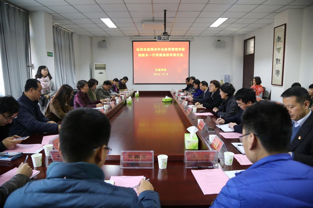 12月8日,郑州升达经贸管理学院院长郭爱先,副院长张洁、张欣等一行18人来bet36体育在线考察交流。院长赵继红、副院长黄怡俐会见了来访客人,院长办公室、教务处、教学质量评估处、教师发展中心、校地合作办公室、招生办公室、就业指导中心、信息化管理中心以及相关二级学院负责人参加了座谈交流。会议由副院长黄怡俐主持。