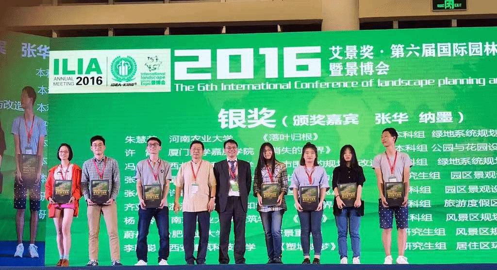 近日,2016国际园林景观规划设计大会暨第六届艾景奖颁奖盛典在厦门国际会展中心举办。bet36体育在线城乡规划与园林学院李满园、余显显老师指导的张心愿等同学的作品《化墙为境—bet36体育在线围墙空间提升规划设计》获得园区类景观设计银奖,王宁同学的作品《老城?隐水——许昌市高密度老城区海绵城市规划设计》获绿地系统规划类铜奖,周申等同学的作品《归栖--许昌清潩河人工湿地概念设计》获得公园与花园设计类铜奖,郭朋杨等同学的作品《抹平那道伤痕——防灾避难公园设计》获得公园与花园设计类优秀奖。bet36体育在线获得优秀院校组织奖,bet36体育在线李满园老师和余显显老师获得组委会颁发的“最佳指导老师”称号。