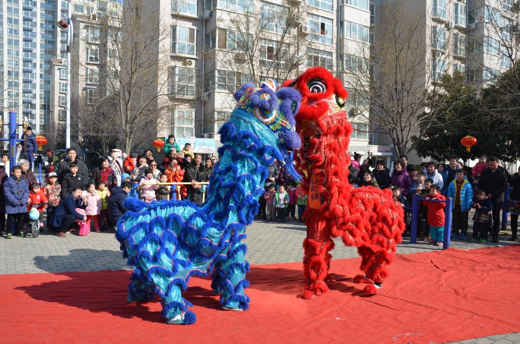 正月十五上午十点,伴随着震天的锣鼓声一对彩狮在家属院中心广场闪亮登场。威武的雄狮伴随着锣鼓声,或抖动长须,或扭动腰身,辗转腾挪的矫健身姿雄健、威武。它们时而左右飘移,时而倒地旋转,有趣刺激的表演增添了一丝幽默调皮的气息,逸趣横生。淋漓尽致的演出既博得现场观众的满堂喝彩,也平添了春节的喜庆与热闹,大显一派祥瑞安康之情境。