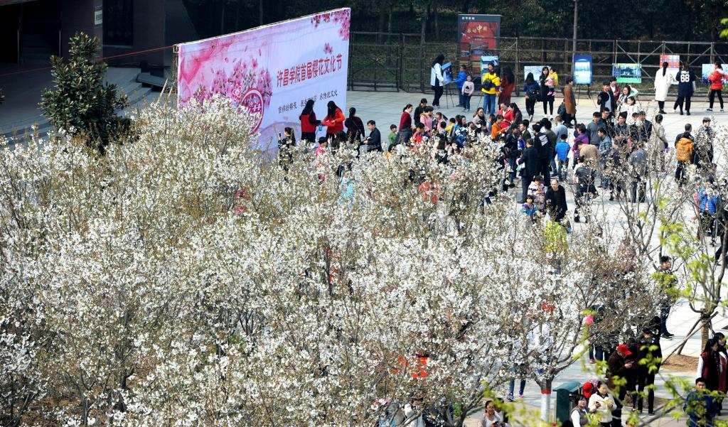 樱花烂漫几多时,柳绿桃红两未知。白色的樱花瓣点缀枝头,教学楼掩映在层层叠叠的花枝里——次第盛开的樱花将bet36体育在线点缀得春意盎然。游客闻香而来,沉浸于许院美景。