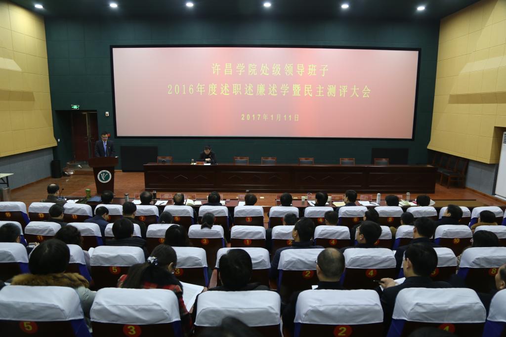 1月11日,bet36体育在线在创新创业学院双创信息中心召开了处级领导班子2016年度述职述廉述学暨民主测评大会。全体校领导出席会议,全校处级干部、各单位院长助理与主任助理参加会议。会议由党委组织部部长谭水木主持。
