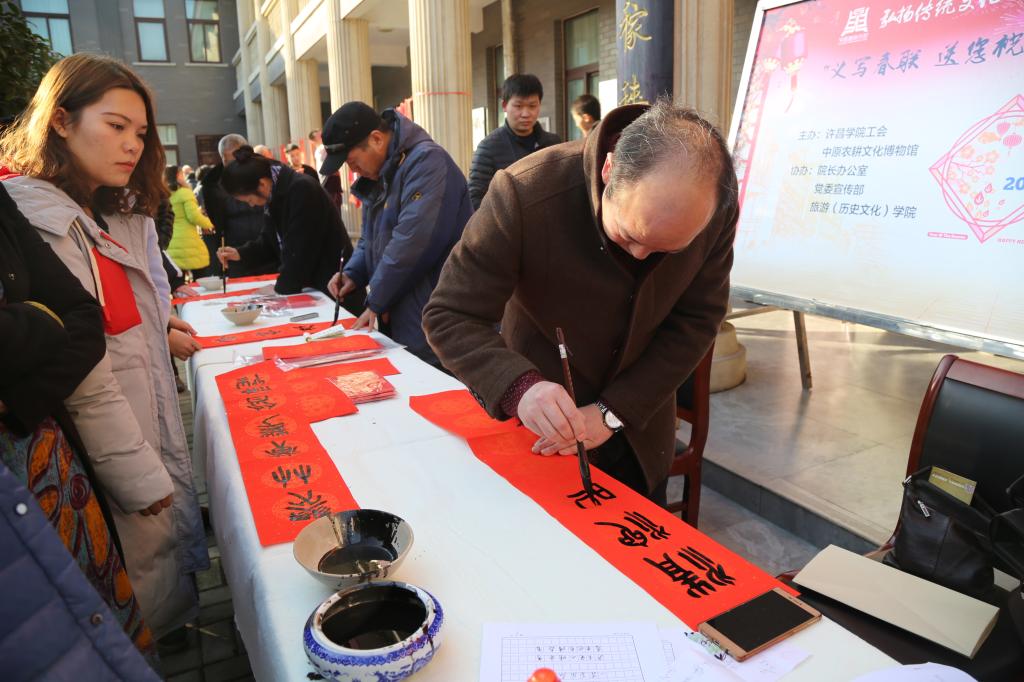 bet36体育在线正校级调研员、中原农耕文化博物馆名誉馆长汪庆华教授,许昌市文广新局党委委员,bet36体育在线优秀校友代表高宇平和河南省、许昌市书法家协会10多名书法家来到bet36体育在线,为教职工义写春联、送上新春的祝福。