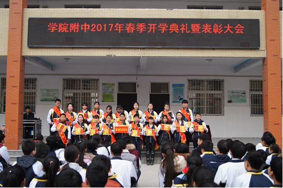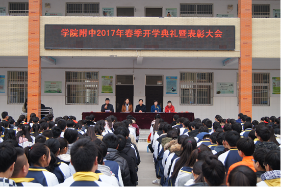 2月17日,bet36体育在线附属中学在教学楼楼前广场举行2017年春季开学典礼暨表彰大会。附属中学校长崔俊平等主要负责人和全体师生、部分家长代表一起参加了活动。仪式由政教主任刘永胜主持。