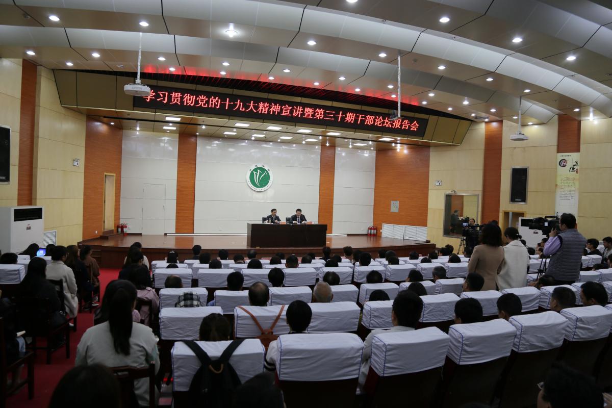 11月10日,十九大代表、许昌市委书记武国定做客bet36体育在线第三十期干部论坛,向广大师生宣讲党的十九大精神。市委常委、市委秘书长王志宏,副市长赵淑红等出席报告会,bet36体育在线党委书记闫纪建、院长赵继红等全体校级领导干部、全体中层干部,博士、教授、学生代表聆听了武国定书记的精彩报告。报告会由校党委书记闫纪建主持。