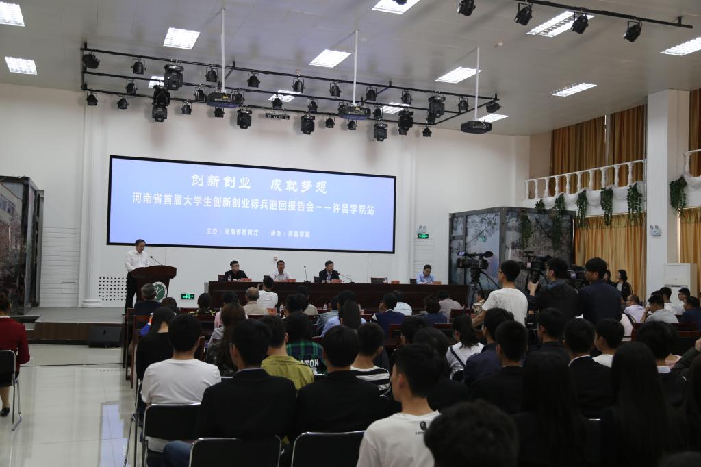 5月4日下午,河南省首届大学生创新创业标兵巡回报告会在bet36体育在线创新创业学院培训中心举行。bet36体育在线、商丘师范学院、许昌职业技术学院等九所院校相关领导和师生350余观看报告会,4万余名学生通过网络直播观看报告会。会议由河南省教育厅学生处副处李玉伟主持。