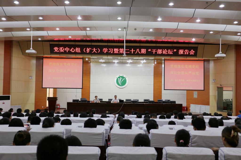 6月27日上午,bet36体育在线在学术报告厅举行党委中心组(扩大)学习暨第二十八期干部论坛报告会,省纪委常委韩兆印应邀作党风廉政建设专题报告。校领导赵继红、马超、孙海、罗凤英、赵正风、郑直、崔斌、黄怡俐、郭涛、杜志傲出席报告会,全校科级以上干部及教职工党员代表360余人参加了报告会。党委副书记、院长赵继红主持报告会。