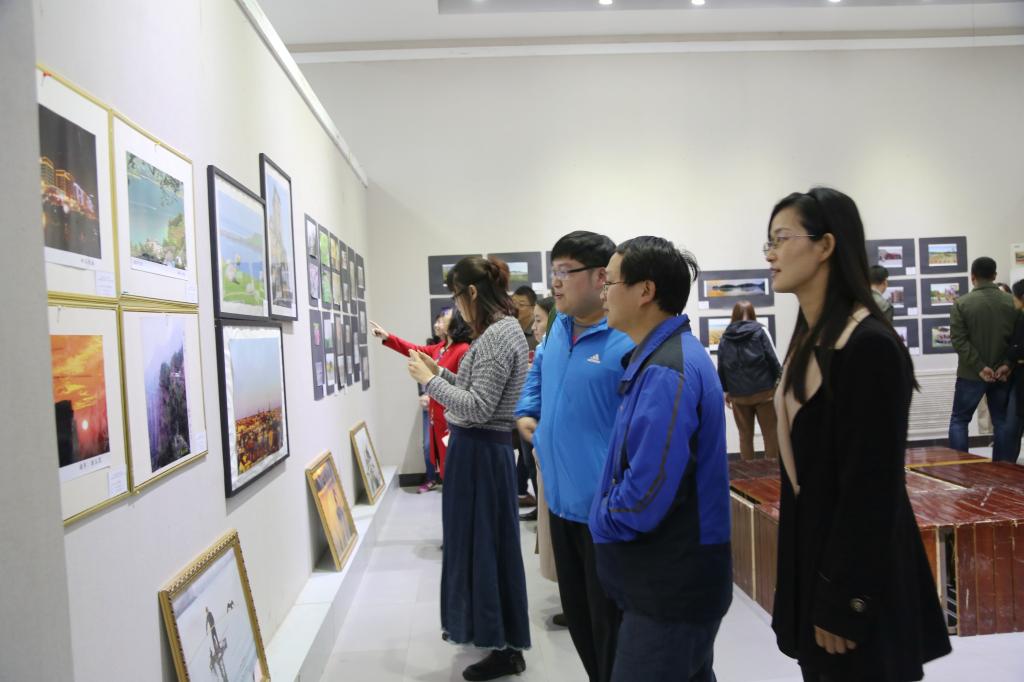 10月25日上午,由校工会主办,设计艺术学院、美术学院、校教职工书画协会和摄影协会承办的“欢庆十九大,共筑中国梦”bet36体育在线教职工书画摄影暨手工艺作品展在bet36体育在线吴道子艺术馆开展。校党委书记闫纪建,院长赵继红,党委副书记孙海,纪委书记罗凤英,副院长赵正风、崔斌、郭涛,工会主席杜志傲等校领导和bet36体育在线的一百余名教职工共同前往观看了展出。