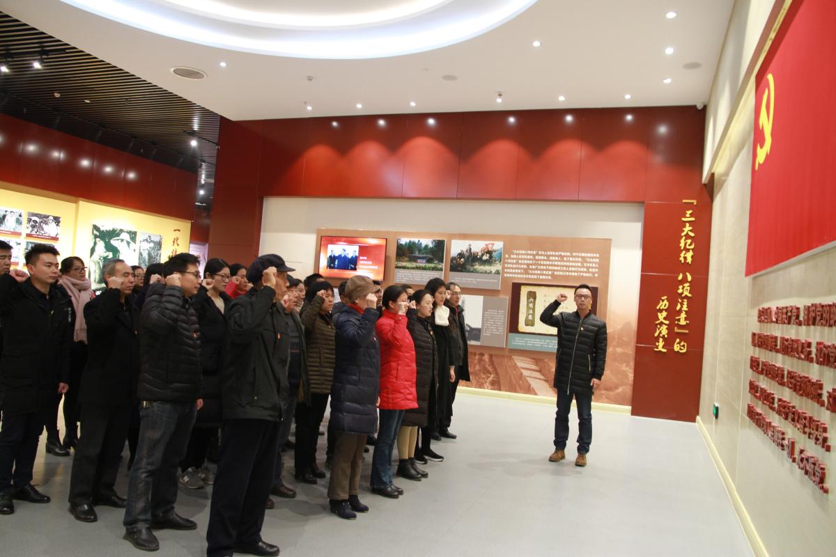 在中国共产党入党誓词展示墙前,全体人员庄严肃立,集体重温了入党誓词。