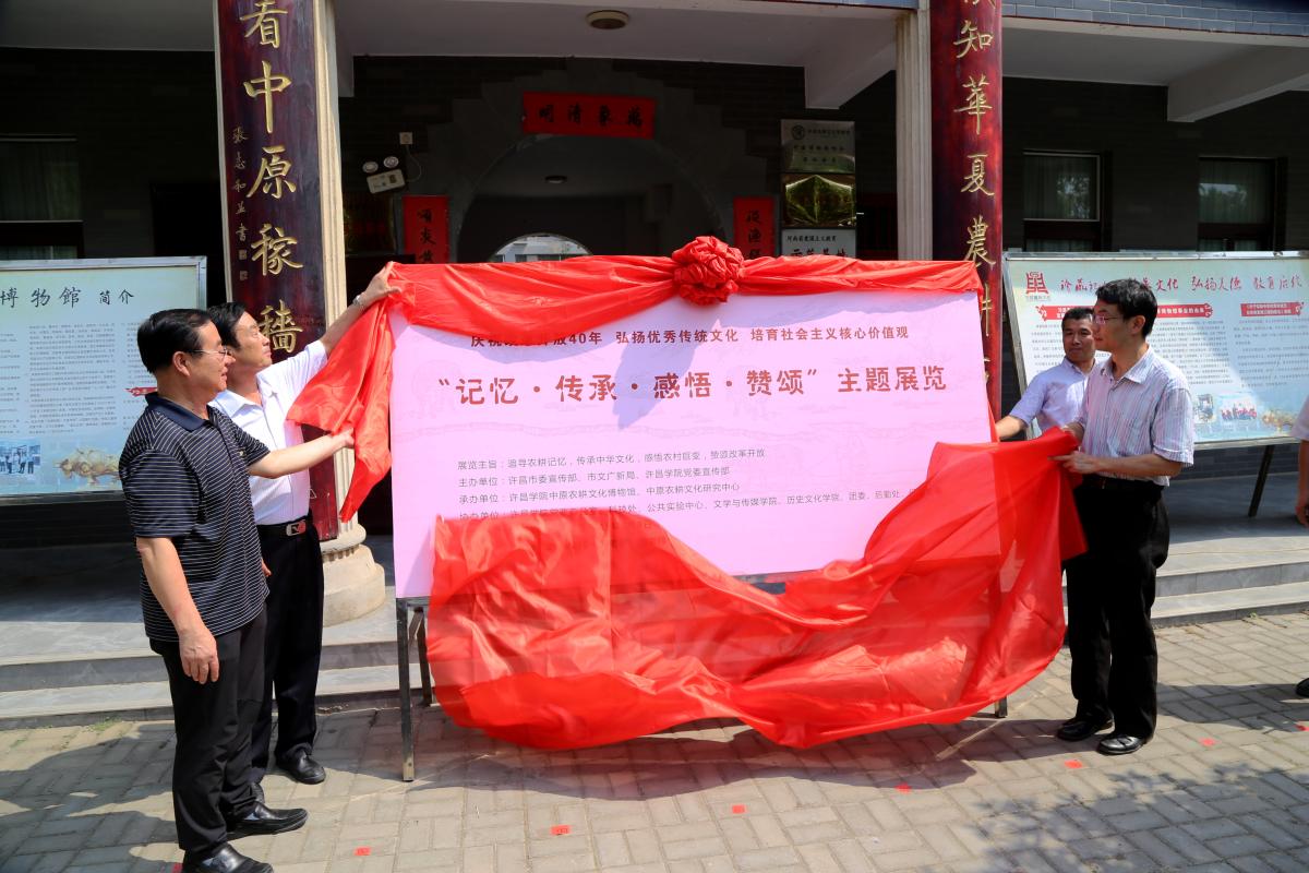 许昌市委宣传部副部长赵献东在讲话中指出,农博馆开馆5年多来,在省内外产生了广泛影响,已成为开展传统文化教育和爱国主义教育的重要基地。这次主题展览,是许昌市今年文化与自然遗产日的一项重要活动。展览以大量馆藏原创图片,深入而系统的展现出了传统农耕时代农业、农村、农民的真实风貌,热情赞颂改革开放以来三农面貌的沧桑巨变,这样的教育方式是十分生动的,希望在展览期间内,广大民众、特别是青少年学生热情踊跃的组织参观,接受启迪和教育。