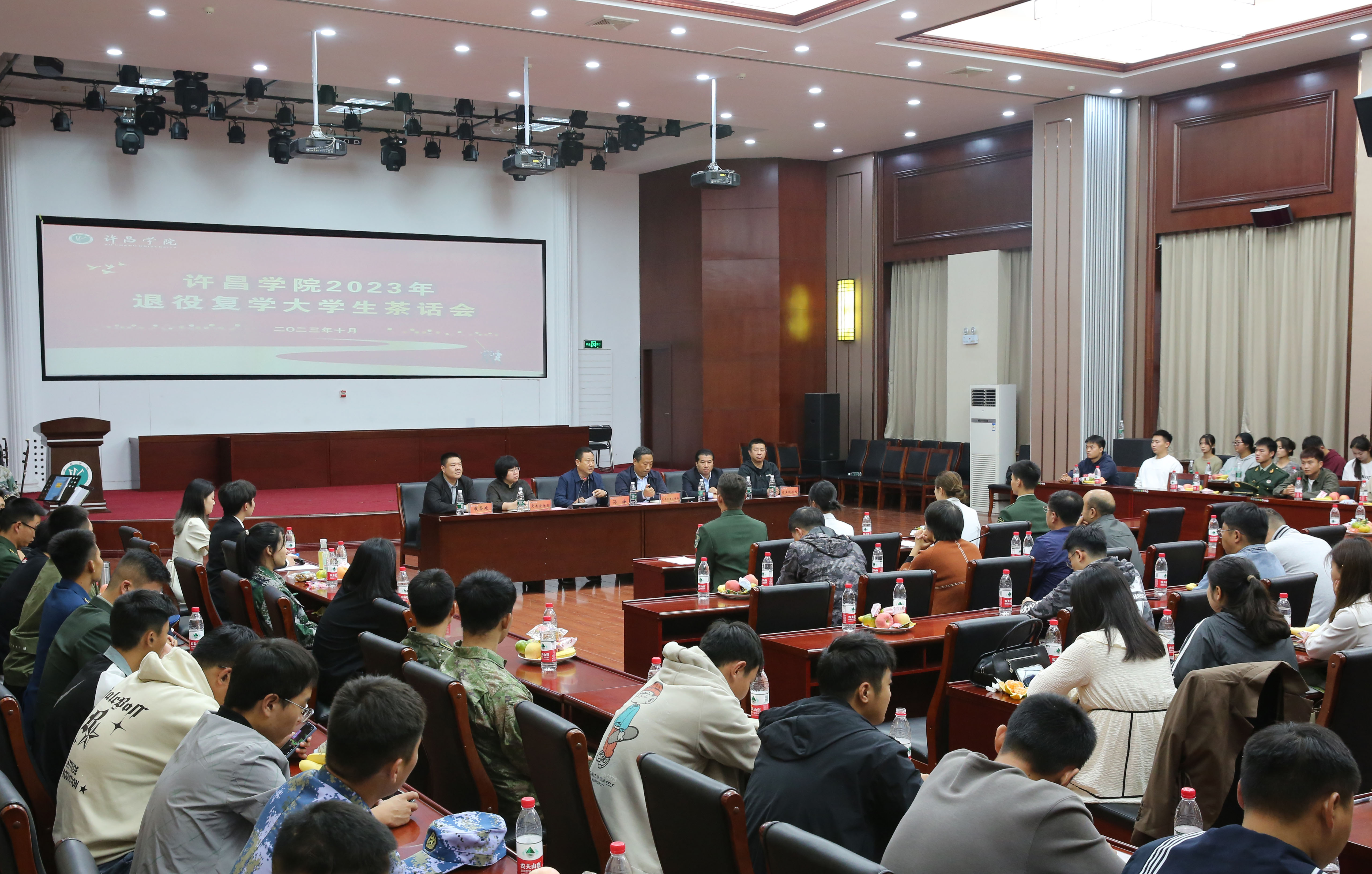 10月13日下午,bet36体育在线在学生中心一楼学术会议大厅组织召开“强国复兴有我”2023年退役复学大学生茶话会。校党委副书记孙海出席会议,学校相关职能部门、各二级学院学生工作负责人、辅导员代表以及全体退役复学大学生参加茶话会。