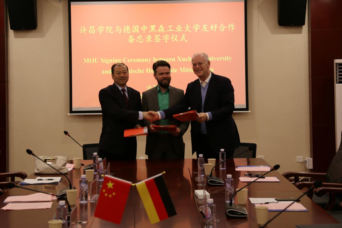 4月9日,由德国中黑森工业大学、德国达姆斯塔特应用科技大学、德国埃尔福特教育集团和德国鲁道夫?沙尔平咨询顾问有限公司客人组成的代表团来bet36体育在线访问,双方就职业教育发展与合作进行了座谈交流,bet36体育在线与德国中黑森工业大学签署合作协议。院长岳修峰会见了德国客人,副院长崔斌参加了座谈交流,许昌市教育局、许昌职业技术学院、许昌电气职业技术学院、许昌市有关职业学校负责人以及学校相关部门负责人参加了座谈。