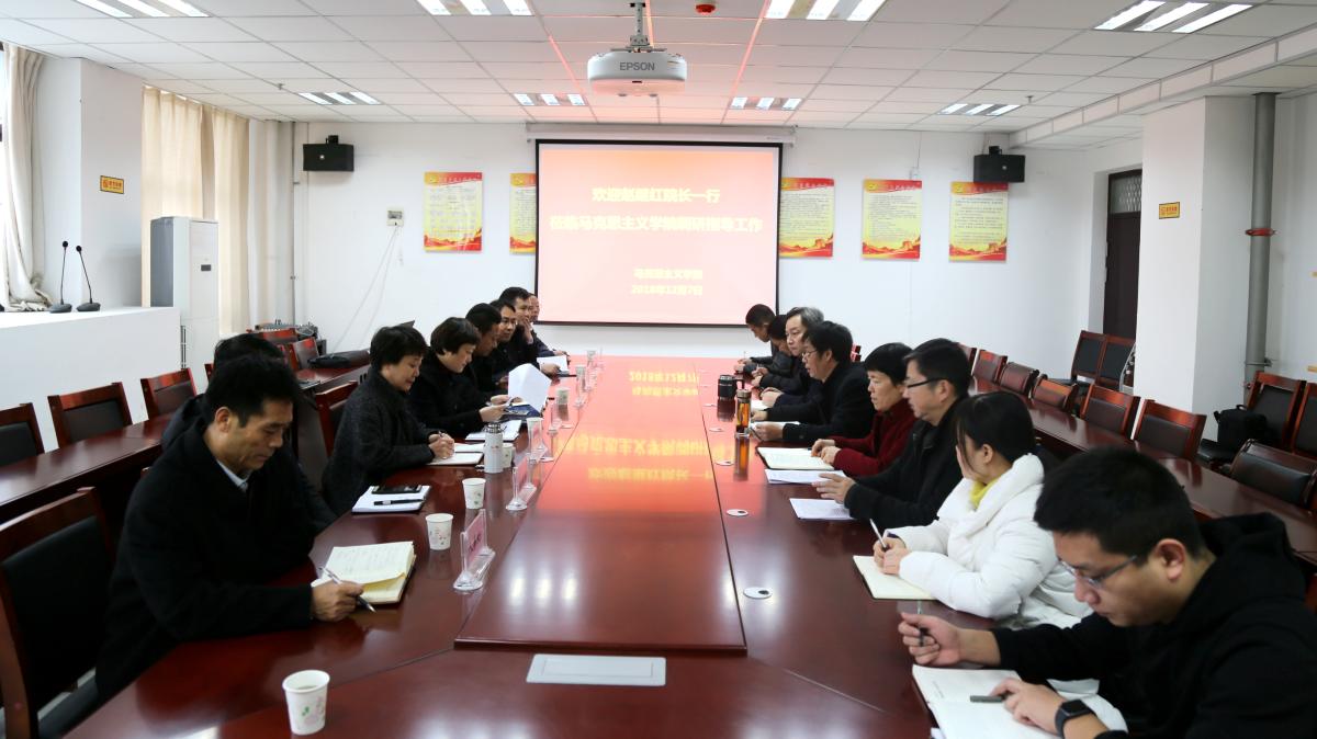 院长赵继红详细听取了马克思主义学院的工作汇报。马克思主义学院自成立以来,紧紧围绕立德树人根本任务,坚持以高质量党建引领学院高质量发展,聚焦主业,注重加强队伍建设,强化学科建设,积极发挥科学研究的理论先导作用,认真做好习近平新时代中国特色社会主义思想和党的十九大精神“三进”工作,切实发挥思想政治教育主阵地主渠道作用,较好地完成了马克思主义理论教学科研、理论宣传、人才培养、社会服务等工作。