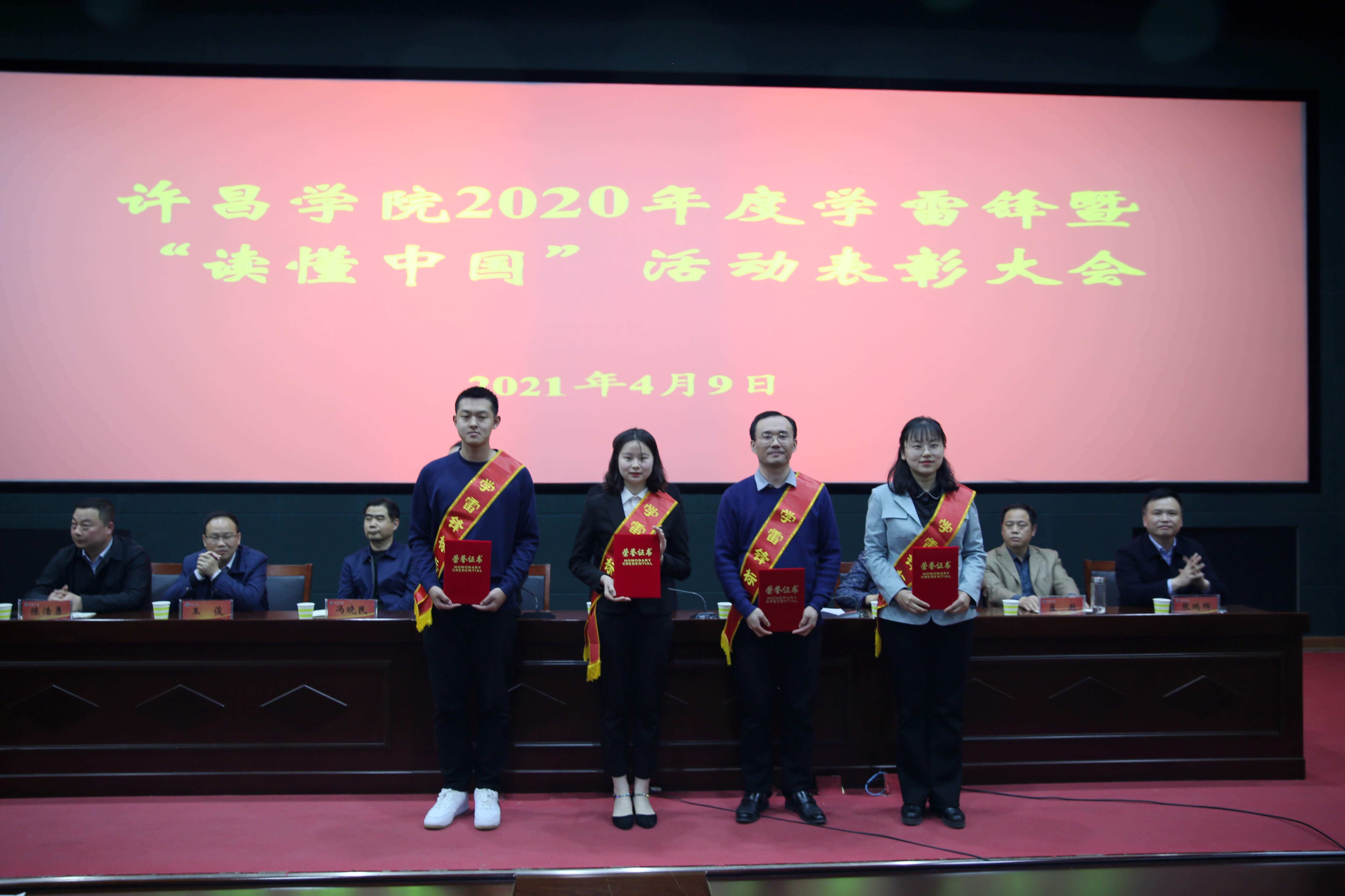 4月9日下午,bet36体育在线2020年度学雷锋暨“读懂中国”活动表彰大会在创新创业中心二楼双创信息中心召开。校党委副书记、关工委主任郭涛,副院长潘春彩,校关工委副主任汪庆华、黄桂贞出席会议。