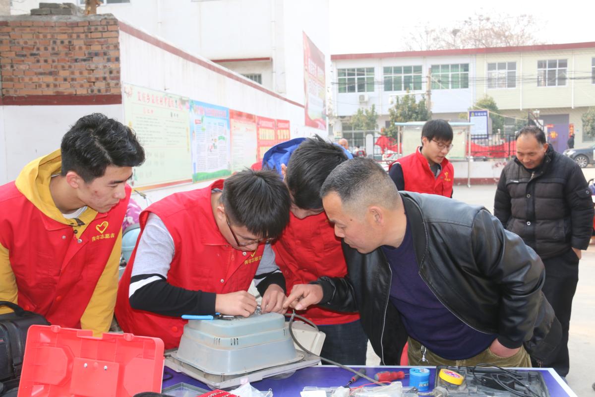 电气(机电)工程学院家电义务维修队、法政学院法律援助队、医学院卫生医疗服务队的志愿者们在袁庄村村委会院内搭设了综合志愿服务站,为当地村民义务维修家电、测量血压、理疗推拿、普及法律知识,累计维修各类家电110余件,并为200余名村民提供了医疗服务和法律咨询,获得了村民们的一致好评。