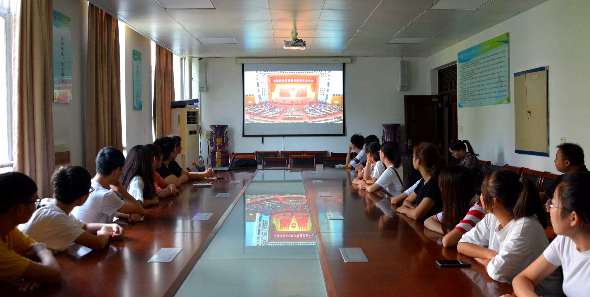 校级领导闫纪建、岳修峰、孙海、郭涛、黄怡俐、周新峰、高金星、潘春彩和机关党委党员干部在办公楼第三会议室集中收看了实况直播。各单位各部门师生员工分别利用网络、广播、电视、新闻客户端等多种形式认真收听收看大会,聆听习近平总书记发表的重要讲话。