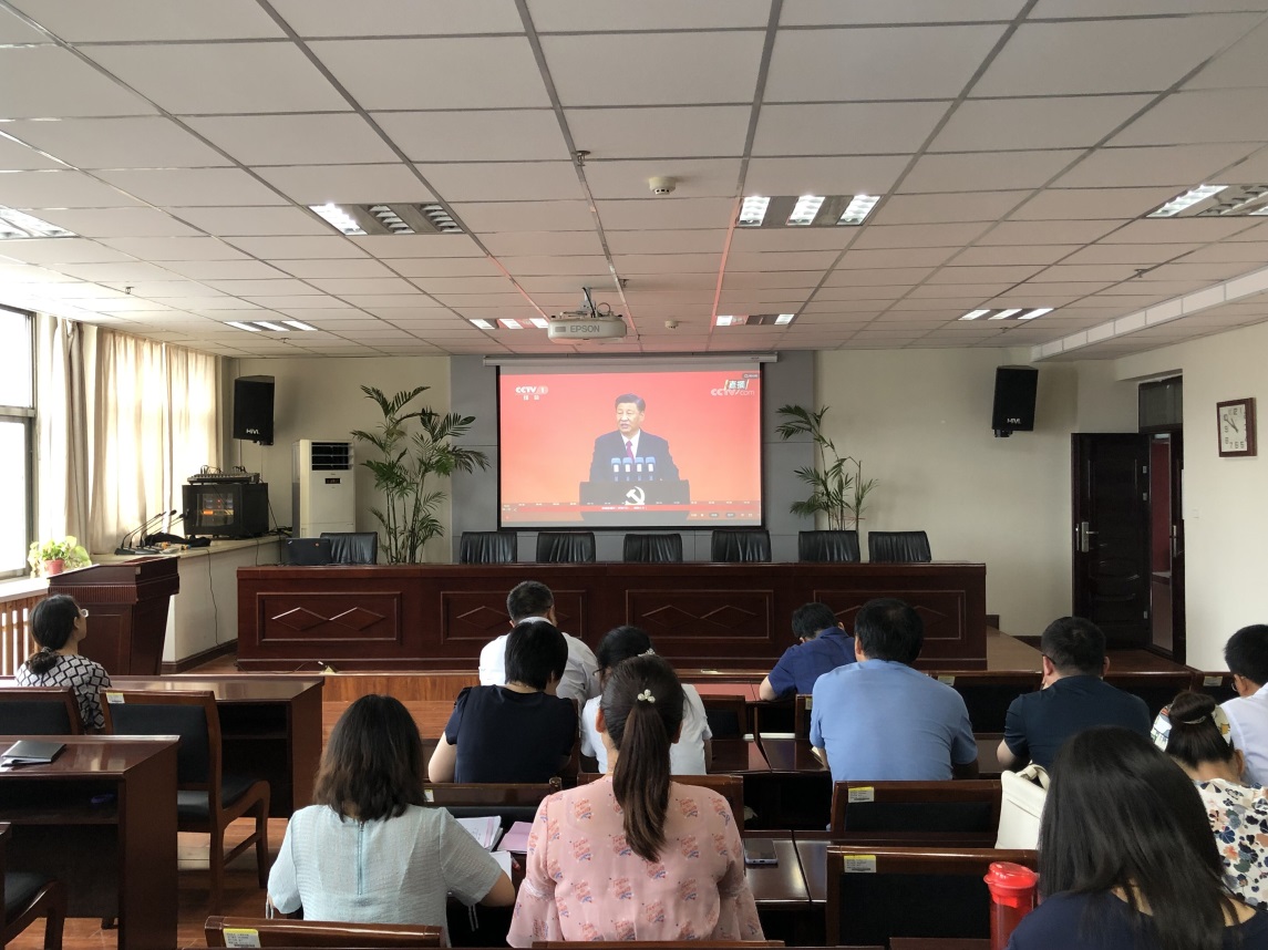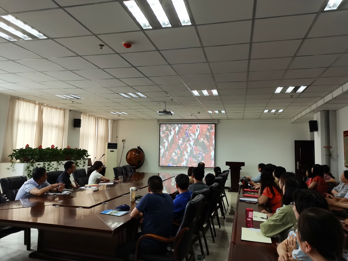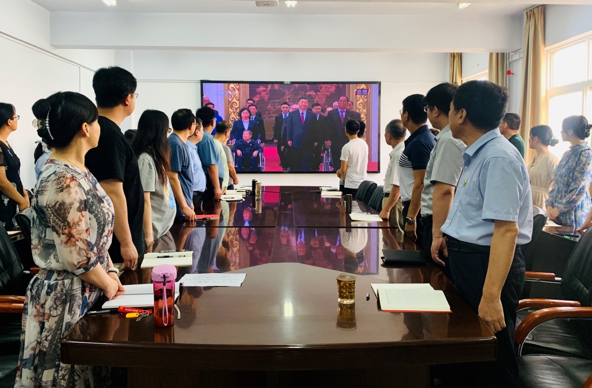 校级领导闫纪建、孙海、郑直、黄怡俐、周新峰、高金星、潘春彩和机关党委党员干部在办公楼第三会议室集中收看实况直播。各基层党委、直属党支部组织师生员工分别利用网络、广播、电视、新闻客户端等多种形式认真收听收看颁奖仪式,聆听习近平总书记发表的重要讲话。