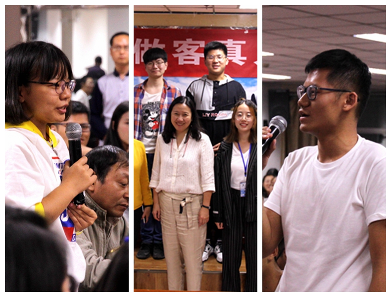 活动现场,张越就其参与制作的电视节目和人生经历与学生进行交流互动,分享了其对新兴传播媒介的看法等,并与大家合影留念。