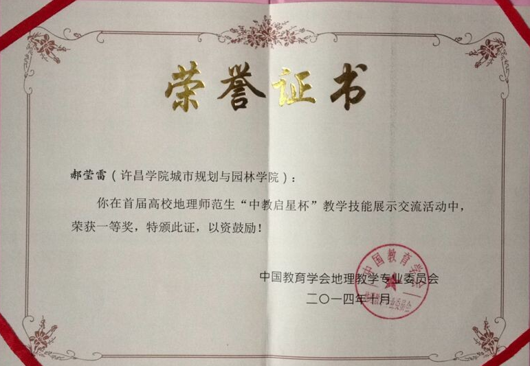 近日,bet36体育在线城乡规划与园林学院学生郝莹雷、蒋彩红在2014年全国高校地理师范生“中教启星杯”教学技能比赛中表现突出,取得一等奖和二等奖的好成绩。