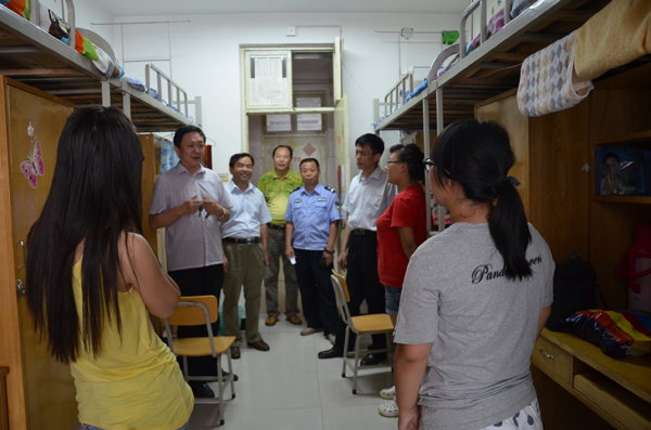 开学了,沉寂了一个暑期的校园又恢复了往昔的热闹。迈入大学校园,同学们内心充满了喜悦与好奇,但是每当这时最容易麻痹大意,发生不安全事故。近年来,全国高校内发生的治安案件、事件呈逐年上升趋势,偷盗、诈骗案件频发。为提高同学们的安全防范意识,增强学生自我保护意识,了解应对处理各类突发事件的措施和办法,开学伊始,副院长赵正风就带领后勤管理处、后勤集团、保卫处等相关部门的负责人深入新生宿舍就校园安全问题给同学们上了一课。
