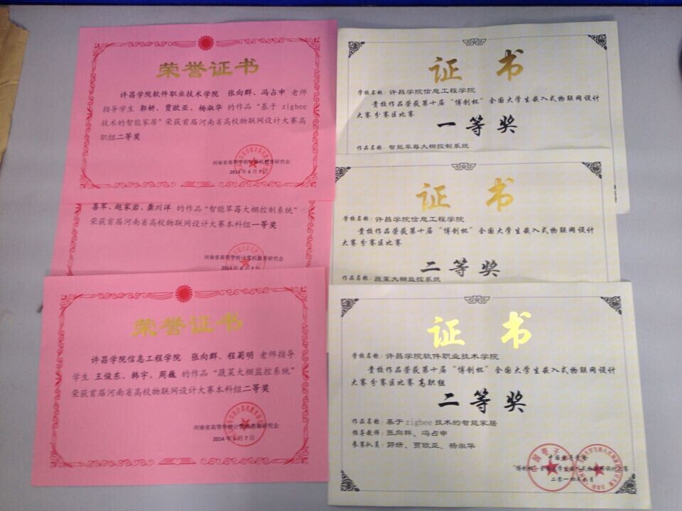 6月6日至7日,第十届“博创杯”全国大学生嵌入式物联网设计大赛(河南赛区)暨首届河南省高校物联网设计大赛在郑州轻工业学院举办。来自省内高校多支队伍参赛,bet36体育在线共派出3支代表队参加了本次比赛并获佳绩。由张向群、王闯老师指导,姚喜军、赵家岩、龚川洋等同学设计的作品“智能草莓大棚控制系统”获得本科组一等奖;由张向群、程菊明、王闯、冯战申等老师指导,王俊东、韩宇、周巍等同学设计的作品“蔬菜大棚监控系统”和郭妍、贾欧亚、杨淑华等同学设计的作品“基于zigbee技术的智能家居”分别获得本科组二等奖、高职组二等奖。
