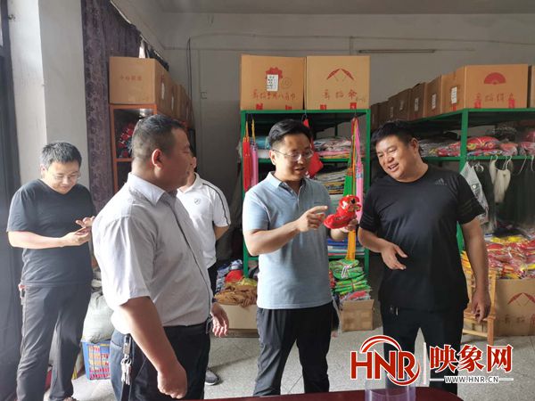 常会强(右二)在霍庄村调研社火产业