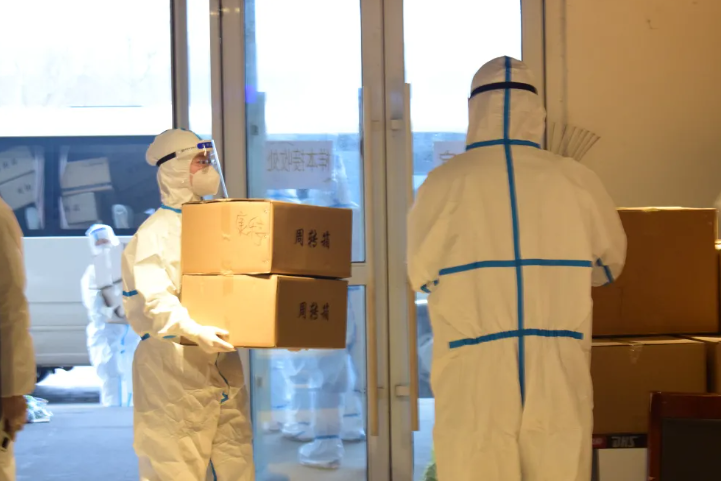 1月11日12时许,20名大学生志愿者抵达移动方舱实验室长葛检测区后,随即分成三个组投入工作。