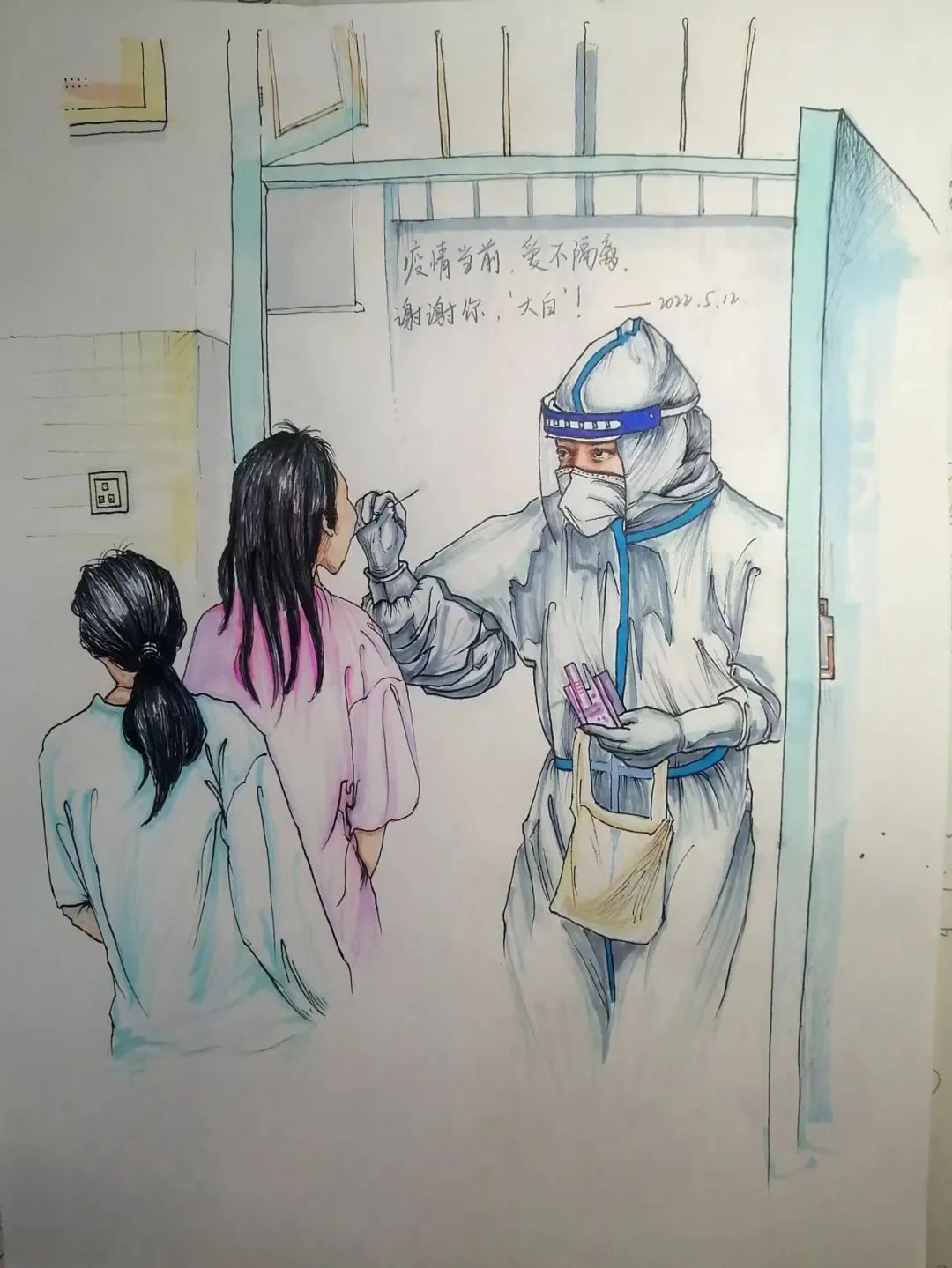在疫情突发的紧急时刻,高校校园里有这样一群最美“逆行者”,他们义无反顾、迎难而上。为感激教师志愿者们的辛苦付出,bet36体育在线美术与设计学院学生以画传情,用画笔描摹出一幅幅最美“逆行者”的身影……