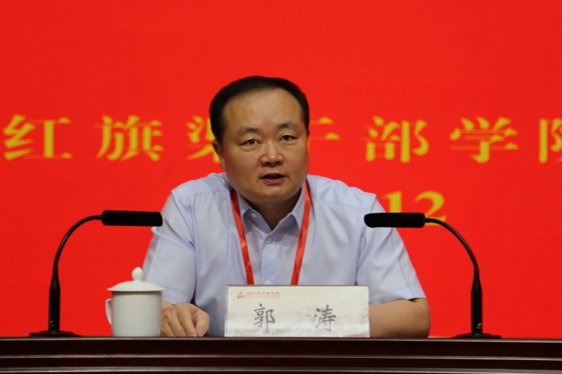郭涛在开班仪式上作动员讲话。他指出,本次培训班是在学校事业发展的关键时期举办的专题培训班,具有特殊意义,希望通过培训,广大干部进一步提振精神、激发动力、焕发活力、勇于担当,奋力开创学校事业发展新局面。就做好本次培训工作,他提出三点要求。一要提高认识,深刻领会举办培训班的重要意义。当前学校改革发展已进入深水区、攻坚期,对于在办学实践中形成的阻碍学校发展的问题和矛盾,必须静下心来进行深入的学习思考和充分的交流研讨,从而统一思想、凝聚共识、对症下药、加以破解。二要传承和弘扬红旗渠精神,努力锤炼能力作风。当前学校事业发展迫切需要一种“精神”来助力推动,那就是红旗渠精神。面对学校“办学特色凝练、办学层次提升、办学空间拓展”三大攻坚任务实际,要用红旗渠精神武装头脑、指导实践、推动工作,使广大党员干部进一步加强党性修养,坚定理想信念,强化责任担当。三要端正学风,确保学习培训取得实效。要紧紧围绕学校全面深化改革和干部能力作风建设这一主题,通过对红旗渠精神的学习和领会,真正对工作进行一次深入思考,把思想认识统一起来,把干事创业的精气神提振起来,把做好工作的能力作风树立起来,积极投入到学校事业发展和各项工作中去。
