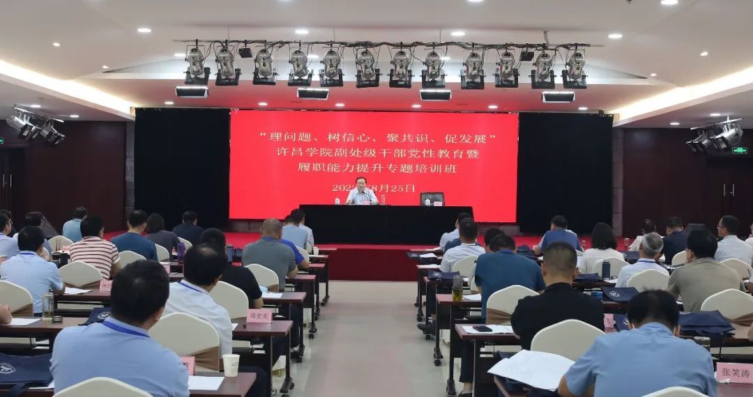 8月22日至26日,bet36体育在线副处级领导干部“理问题,树信心,聚共识,促发展”党性教育暨履职能力提升专题培训班在新乡先进群体教育基地顺利举办。bet36体育在线党委书记郭涛为全体学员作专题报告。来自全校各二级单位的90余位副处级领导干部参加培训。