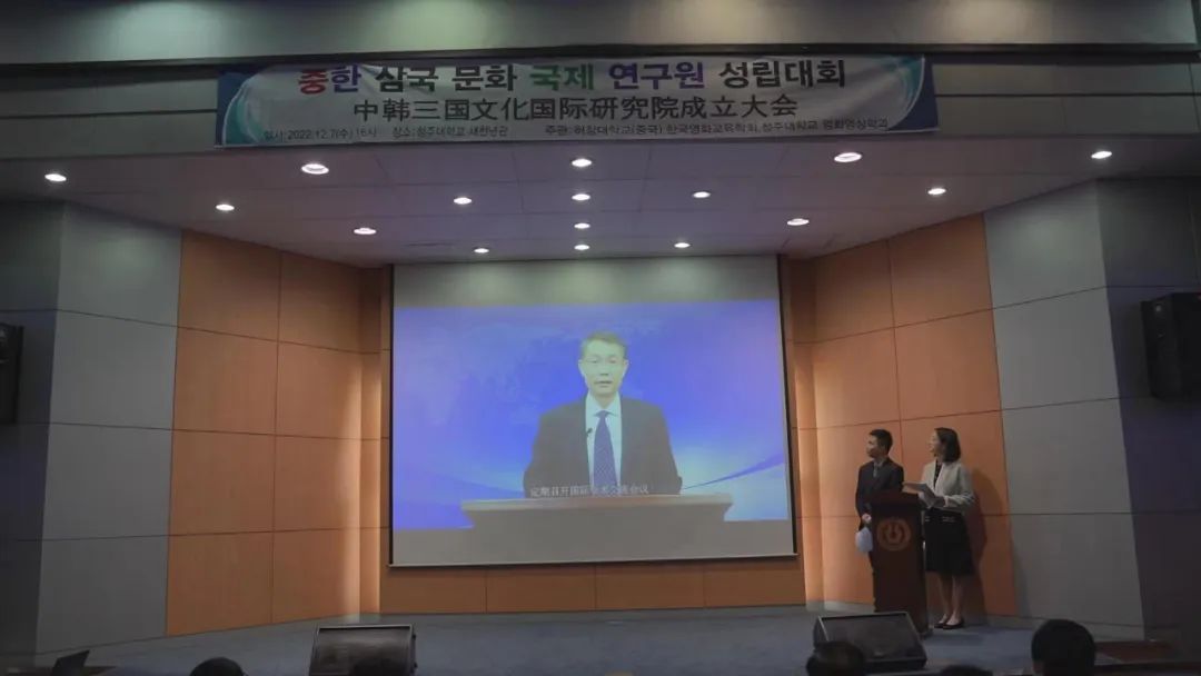 郑直在贺词中表示,对三国文化的高度认同,是中韩两国文化交流的重要动力。中韩三国文化国际研究院的成立,是双方文明交流互鉴的结晶,是相互展示三国文化的重要窗口,更是增进中韩友谊的桥梁。希望中韩三国文化国际研究院充分挖掘三国文化资源,广泛开展国际学术交流,积极对接“一带一路”中韩两国文化交流项目,不断创新适应新时代的三国文化表现形式,努力创作并传播更多增强人民精神力量的文化产品,不断扩大中华文化的影响力,更好的用中华传统优秀文化铸魂育人。
