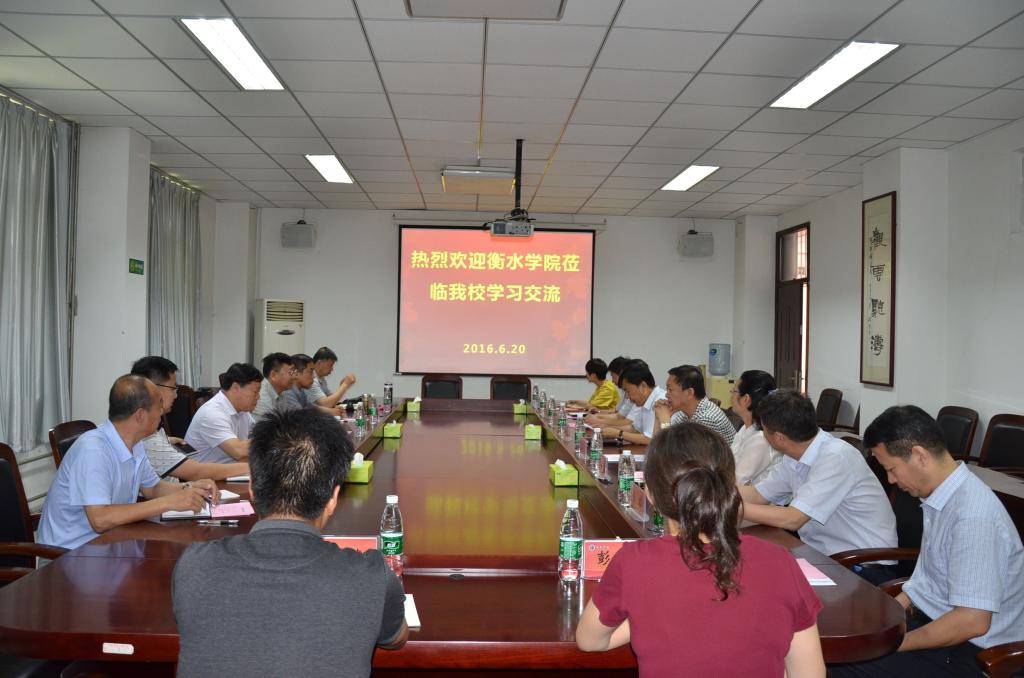 6月20日,衡水学院副校长郭立志等一行6人来到bet36体育在线考察交流,副院长赵正风、工会主席杜志傲会见了来访客人,并与客人进行座谈交流。党委办公室、院长办公室、团委、后勤管理服务中心及相关二级学院负责同志也参加了座谈交流会。