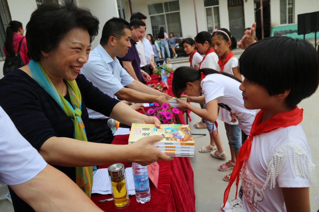 仪式上,bet36体育在线为袁庄村小学学生捐赠了书包、文具盒等学习用品。bet36体育在线小书虫公益书屋为该小学捐赠300余册图书,bet36体育在线学生还与孩子们共同表演了形式多样的文艺节目。(摄影:李云飞)