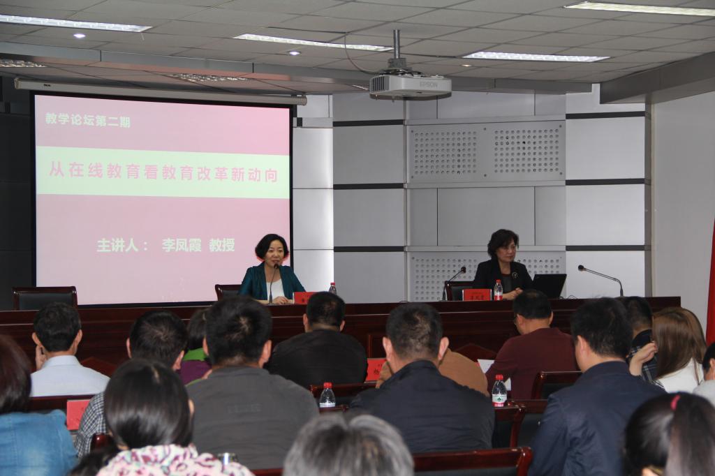 527日,由教务处主办、信息工程学院承办的bet36体育在线第二期教学论坛在办公楼第三会议室举行,北京理工大学博士生导师李凤霞作了《从在线教育看教育改革新动向》的主题报告,来自河南大学、河南理工大学、新乡医学院、南阳理工学院等相关院校的30多位代表和bet36体育在线部分教师100余人参加了论坛。论坛由许bet36体育在线副院长黄怡俐教授主持。