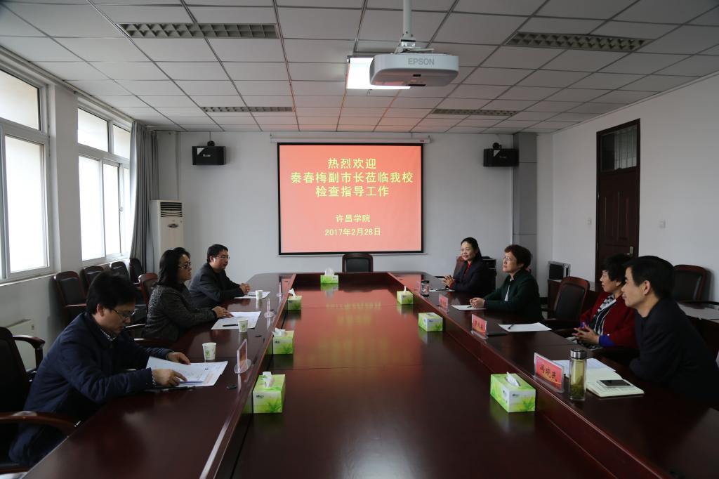 近日,许昌市政府副市长秦春梅一行莅临bet36体育在线,对bet36体育在线承办许昌第十一届三国文化旅游周的有关活动筹备情况进行调研。院长赵继红、纪委书记罗凤英,党委办公室、党委宣传部有关负责同志参加调研座谈。