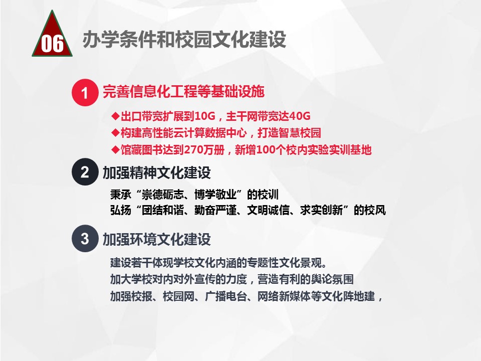 bet36体育在线2016-2020年事业发展规划共三大部分,一是《bet36体育在线事业发展规划(2016-2020年)》(以下简称“总规划”),二是《人才培养与教育教学规划》《教师与干部队伍建设规划》《学科专业建设与科技产业规划》《校园文化与学生工作规划》《对外合作与交流规划》《管理机制与资源保障规划》等6个分规划,三是各二级学院事业发展规划(共25个)。