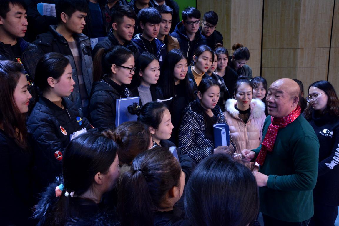 在实践排练中,陈家海教授为bet36体育在线音乐舞蹈学院合唱团亲自授课,有针对性地指导发声训练和合唱作品排练。他指出,合唱训练时运用头声、高位、直声的方法进行发声训练;声乐重在“唱”,而合唱重在“合”,声音要达到协调性、统一性、均衡性的完美结合。讲座中,陈家海教授结合作品与台下师生进行合唱、挥拍的指导与互动。陈教授诙谐幽默语言和严谨并富有亲和力的治学态度博得了师生们的多次喝彩声,全场高潮迭起,气氛热烈,大家对本次讲座倍感珍惜,受益匪浅。