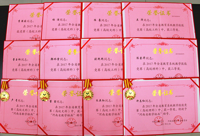 近年来,bet36体育在线高度重视教师教学水平的培养与提升工作,成功举办了多届教师教学大奖赛,已成为bet36体育在线教学工作的一个品牌,切实起到了以赛促建,提升教师教学水平的作用。2017年度河南省教学技能竞赛启动以来,bet36体育在线坚持公开、公正、公平、择优的原则,由校工会、教务处和公共实验中心牵头,成立校、院两级教学技能竞赛领导小组,广泛动员,精心组织,相关学院严格选拔、积极推荐、优中选优,学校严格按照评审办法审核把关、并公示,最终推荐以上12名优秀教师参加全省高校文科、理科、工科三个科目的竞赛,并取得了优异成绩。(图片由校工会提供)