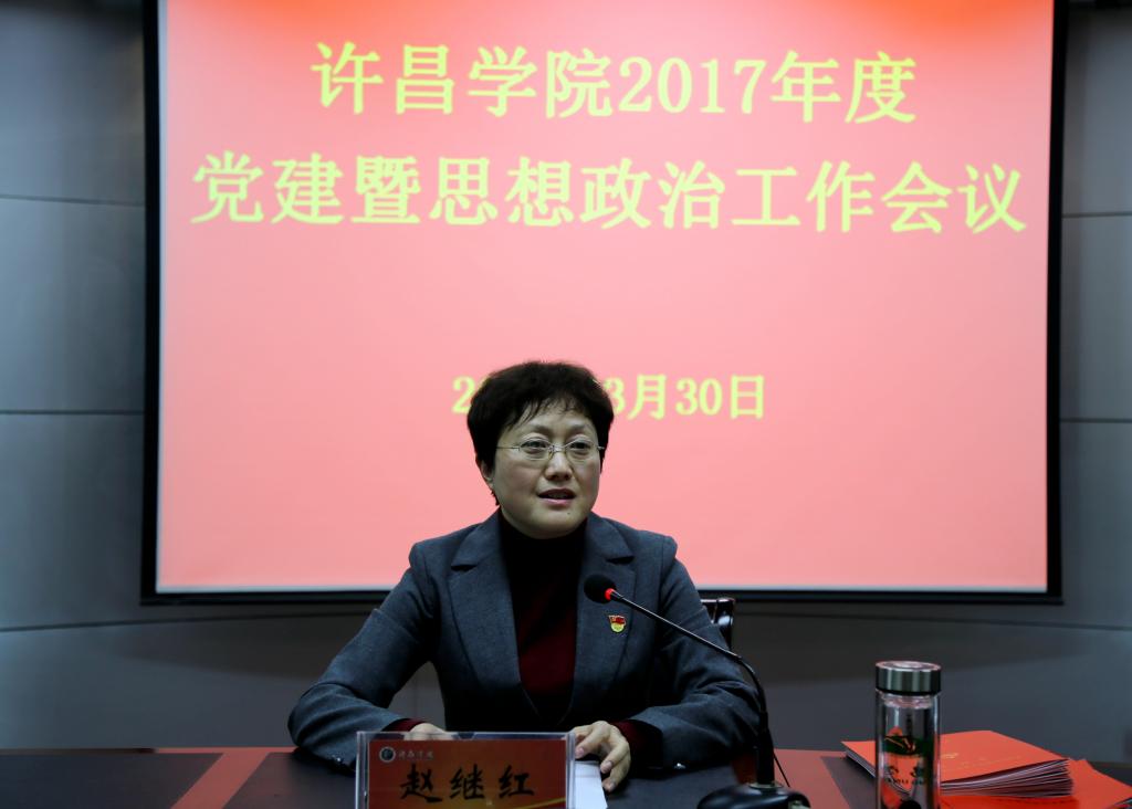 党委副书记、院长赵继红在会上讲话。她指出,做好2017年党建工作、思想政治工作,一是要提高政治站位,增强“四个意识”,持续推动全面从严治党各项工作落到实处。党中央坚持把从严治党摆在突出位置,着力从严从细管党治党,净化党内政治生态,并将“全面从严治党”与“全面建成小康社会”、“全面深化改革”、“全面依法治国”并列为“四个全面”战略布局,希望大家在政治上一定要保持清醒,政治意识再增强一些,政治方向再明白一些,政治立场再坚定一些,政治纪律再严守一些,政治能力再提高一些,政治责任再担当一些,真正从讲政治的高度和站位去理解和落实全面从严治党各项工作。我们还要坚持问题导向,立足标本兼治,全面推进省委巡视反馈意见整改工作。二是要突出重点工作,创新方法路径,切实加强和改进思想政治工作。高校教师要坚持教育者先受教育,努力成为先进思想文化的传播着、党执政的坚定支持者,以德立身、以德立学、以德施教,更好担起学生健康成长指导者和引路人的责任,把思想价值引领贯穿教育教学全过程和各环节并形成长效机制。要强化思想理论教育和价值引领;要发挥哲学社会科学育人功能;要加强对课堂教学和各类思想文化阵地的建设管理;要强化社会实践育人,提高实践教学比重,组织师生参加社会实践活动,完善科教融合、校企联合等协同育人模式;要健全高校思想政治工作评价体系,研究制定内容全面、指标合理、方法科学的评价体系,推动高校思想政治工作制度化。三是打造特色品牌,做到以点带面,着力推进基层党建工作水平整体提升。要树立党的一切工作到支部的鲜明导向,注重把思想政治工作落到支部,把从严教育管理党员落到支部,把群众工作落到支部。党支部要真正成为教育党员的学校、团结群众的核心、攻坚克难的堡垒。要把基层党组织建设与基层教学组织建设有机结合,发挥党建对教学科研中心工作的带动引领作用;要加强在学科带头人、教研室主任、教学科研骨干和优秀青年教师群体中发展党员的力度;要推进基层党建工作特色品牌创建,开展基层党支部建设提升主题活动,抓好“五好党支部”创建工作;要完善党建工作三级量化考核机制。