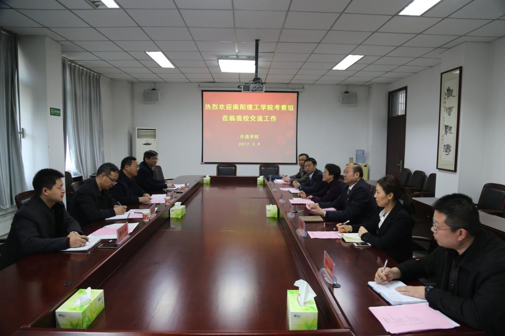 3月9日,南阳理工学院副院长张世海一行5人来bet36体育在线考察交流。院长赵继红、副院长崔斌会见了来访客人,并与考察团一行深入座谈交流,院长办公室、发展规划处等有关单位负责同志也参加了座谈交流会。