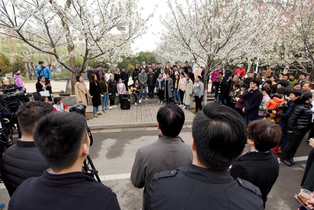 党委副书记马超在开幕式上致辞。他说,学校的359棵樱花树仿佛是梦幻的精灵,使青葱校园更显多彩与浪漫。这些樱花,体现着全校教职工高尚仁爱、无私奉献的园丁情怀,代表着两万余名莘莘学子的青春活力和只争朝夕的进取精神,象征着大学文化的圣洁和高贵。今年的bet36体育在线首届樱花文化节,精心安排了原创诗词征集、摄影作品大赛、摄影家、媒体人进校园、中华传统礼仪展示、樱花茶艺展示、无伴奏合唱、青春快闪等多项文化活动,希望各位来宾、广大市民在走进bet36体育在线观赏校园美景的同时了解学校发展,感受大学文化。