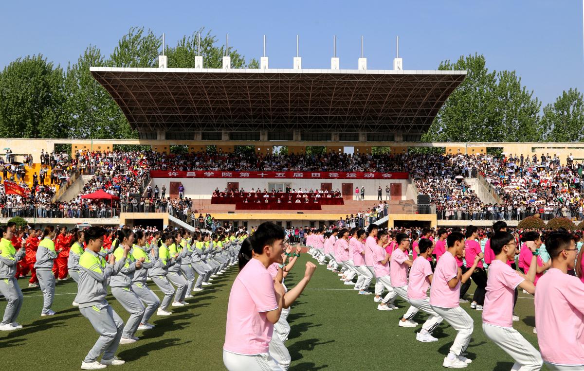 开幕式上,二级学院学生代表队进行了武术健身操“英雄少年”的比赛。